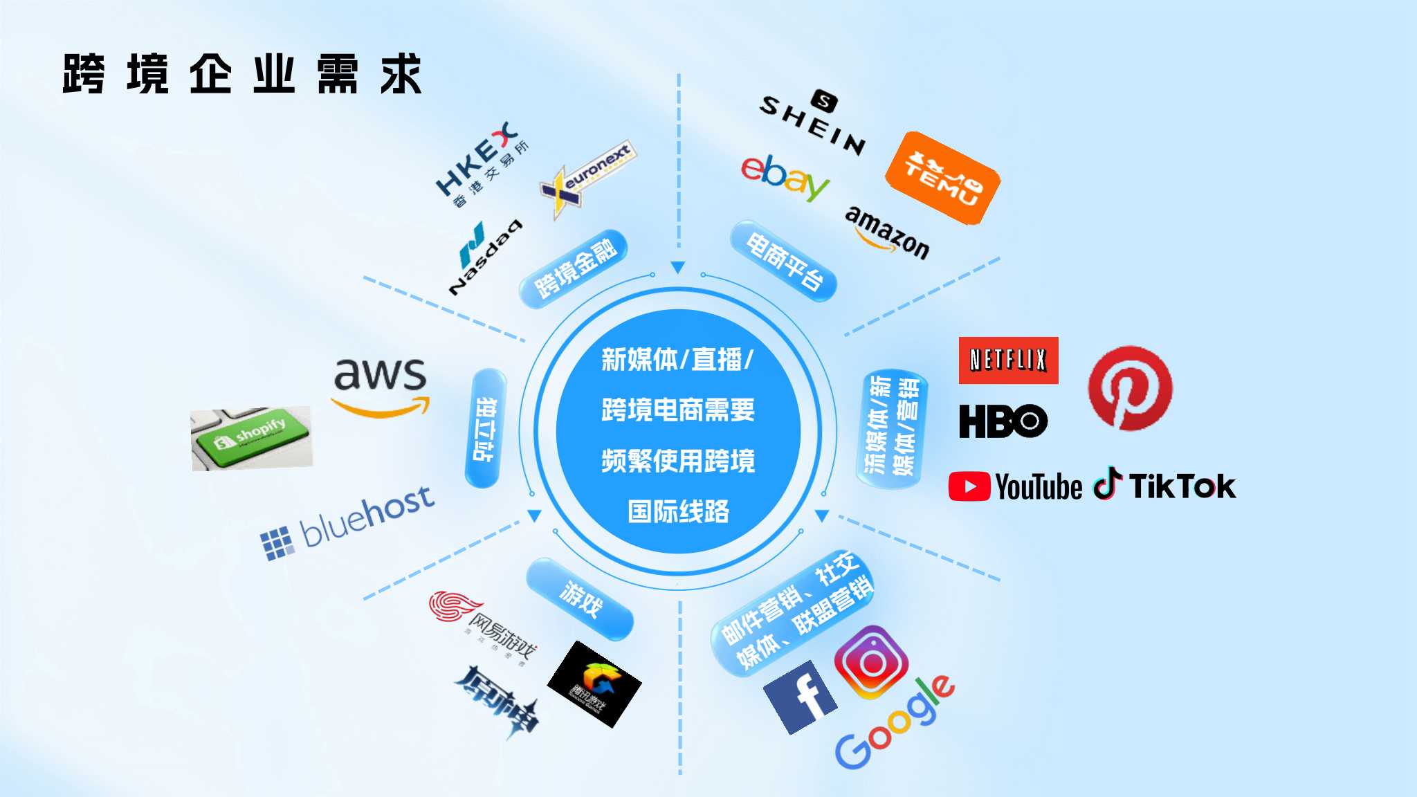 合規跨境線路全棧解決方案,為用戶提供全球網絡高速傳輸、全域覆蓋、安全可靠的實時網絡連接及加速保障